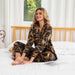 Indulge in sophisticated glamour with this Black & Gold Chain Print Silk Pajama Set, crafted from 100% 22 Momme Mulberry silk for a smooth, lustrous feel against your skin. The striking baroque-style chain pattern in rich gold tones adds a touch of high-fashion elegance, making this set perfect for both sleep and lounging in style.