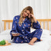 Style: Two-piece silk pajama set.